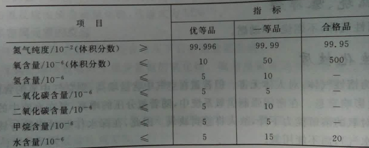 國(guó)內(nèi)高純氮?dú)猱a(chǎn)品標(biāo)準(zhǔn)
