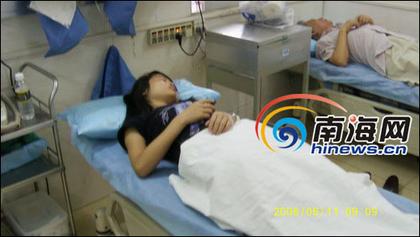 受傷女工蔡亭正在接受治療(南海網(wǎng)記者童琳攝)